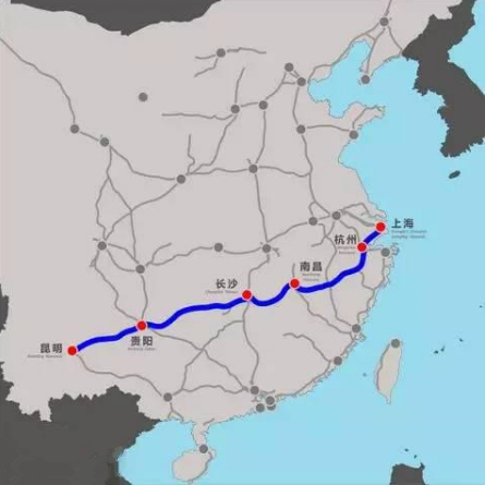 沪昆高铁长昆段,是进入云贵(中国西部)地区的第一条高铁。线路东起湘黔省界,向西经贵州省玉屏、三穗、凯里、贵定、贵阳、平坝、安顺、关岭、普安、盘县后进入云南省,沪昆高铁线路全长2266公里,贵州境内正线全长559.473km,桥隧比例为81.95%。