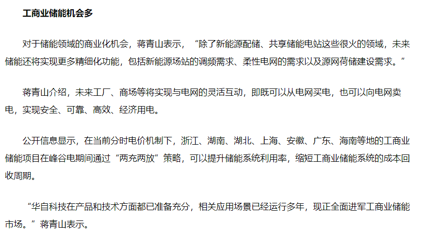 华自科技蒋青山:储能真正的决战在于工商业侧