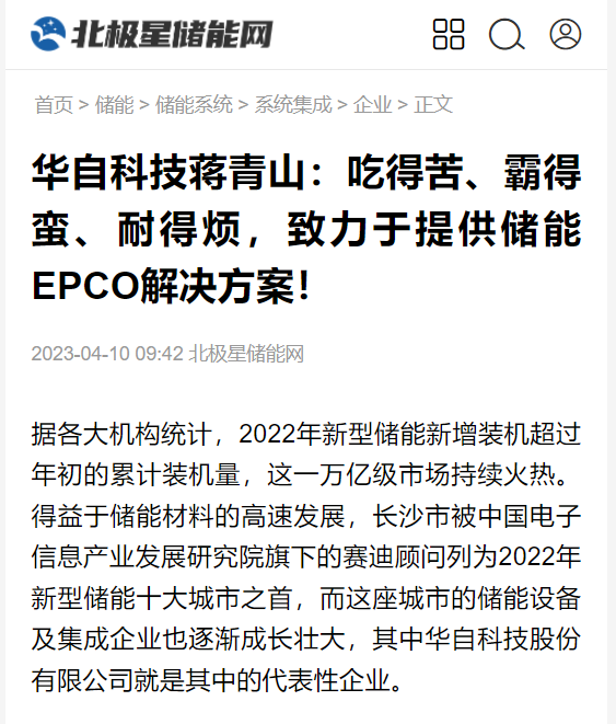 华自科技蒋青山:吃得苦、霸得蛮、耐得烦,致力于提供新型储能EPCO解决方案