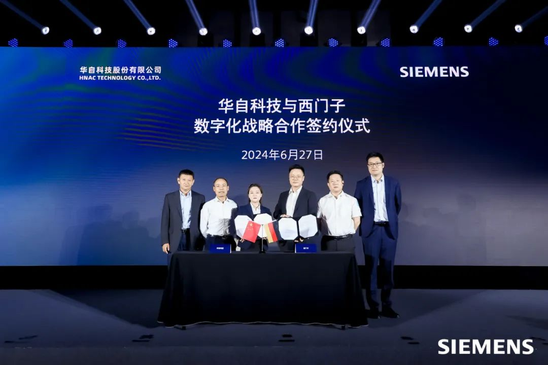 签约仪式上,西门子数字化工业集团华中大区湖南区域总经理胡青、华自格兰特销售中心副总经理吴萍代表双方签署战略合作协议,西门子数字化工业集团高级副总裁兼过程自动化事业部总经理刘力康、高级副总裁兼华中大区总经理刘志生,华自科技副总裁兼华自格兰特董事长蒋国华、华自格兰特副总经理陈斌出席并见证签约仪式。