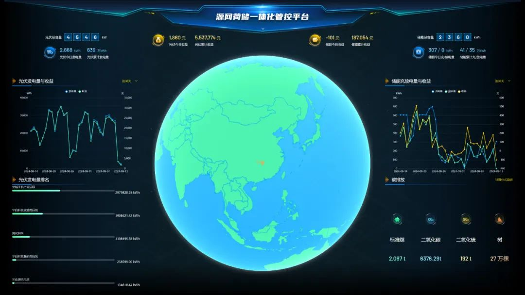 在全球能源转型的背景下,随着新型电力系统的构建,对新能源消纳和存储、电网系统支撑力等提出更高要求。“源网荷储一体化”通过将电源、电网、用电负荷和储能系统进行有机整合,实现电力系统的高效协同与动态平衡,提高清洁能源利用率、优化能源配置、平抑供需波动,是推动能源转型和实现“双碳”目标的重要力量。一体化模式可实现政府、园区、投资商、用户和能源服务商多方共赢,构建能源服务新生态圈。精准发力储能赛道,华自科技在源、网、荷多场景储能建设积累了丰富经验和技术。基于“云大物移智链边”技术,公司创新性的打造“源网荷储一体化管控平台”,通过实现智能调度、智能运检、虚拟电厂、能源服务、电碳管理、电热管理等功能,对“源网荷储”各类资源进行一体化协调控制,实现灵活互动,有力推动新型电力系统建设。目前该平台已在多个项目中应用,有效提升电网安全运行水平,促进新能源消纳,带来了较高的经济效益。