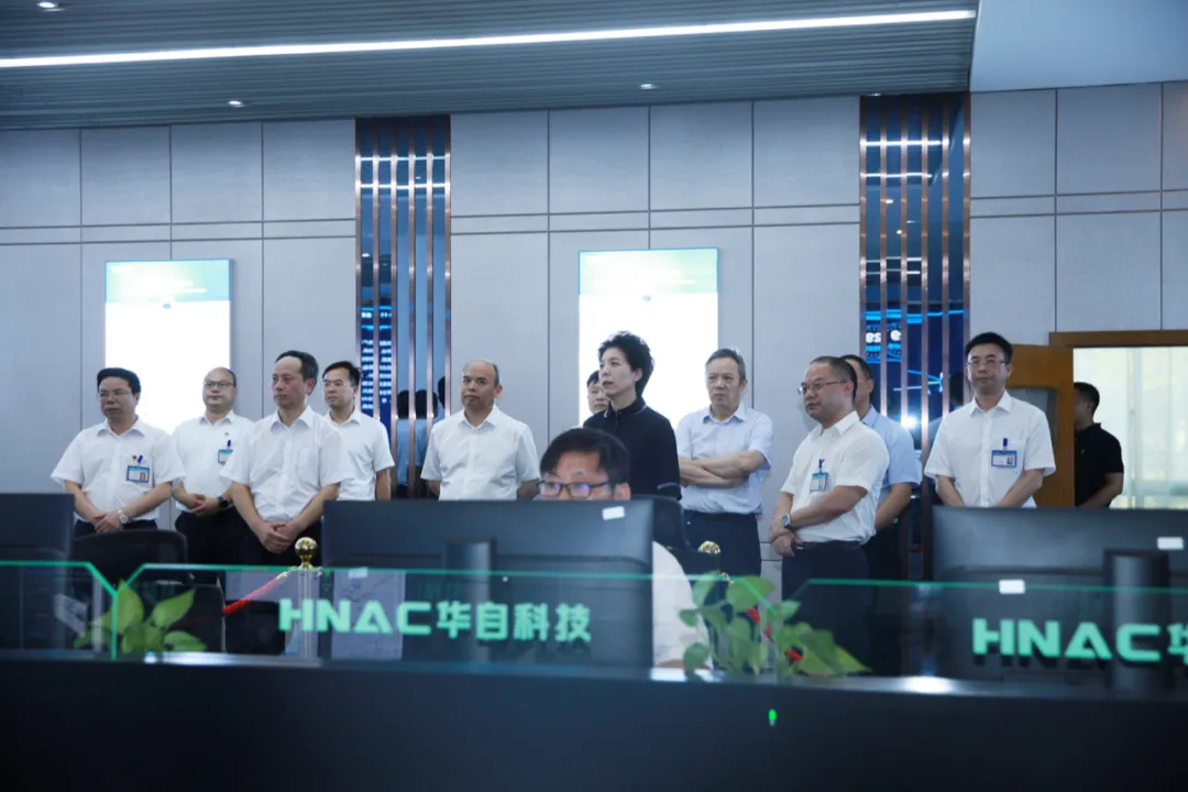 2021年9月24日,湖南省委副书记乌兰莅临华自科技,就湖南省新型能源装备及电力装备产业发展情况进行考察。省委副秘书长肖祥清,省工信厅副厅长黄宝林,省工信厅总工程师、一级巡视员黄学工,省能源局局长石超刚,长沙高新区党工委副书记、管委会主任郭力夫等陪同调研,华能自控集团董事长、华自科技董事长黄文宝,华能自控集团总裁汪晓兵,华自科技总裁佘朋鲋、副总裁袁江锋、唐凯等出席活动。
