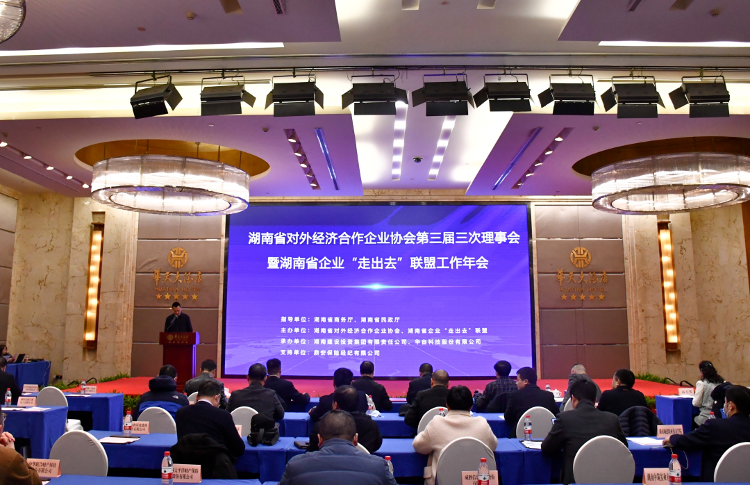 2月3日,湖南省对外经济合作企业协会(以下简称“协会”)第三届三次理事会暨湖南省企业“走出去”联盟工作年会在长沙召开。湖南省商务厅二级巡视员楼良金、对外投资和经济合作处处长胡松强和副处长李正淳等领导出席本次会议。协会理事单位、湖南省企业“走出去”联盟共70余家单位代表参加会议。本次会议由湖南建设投资集团有限责任公司、乐投平台承办,鼎安保险经纪有限公司支持。会议由协会秘书长刘浦主持。
