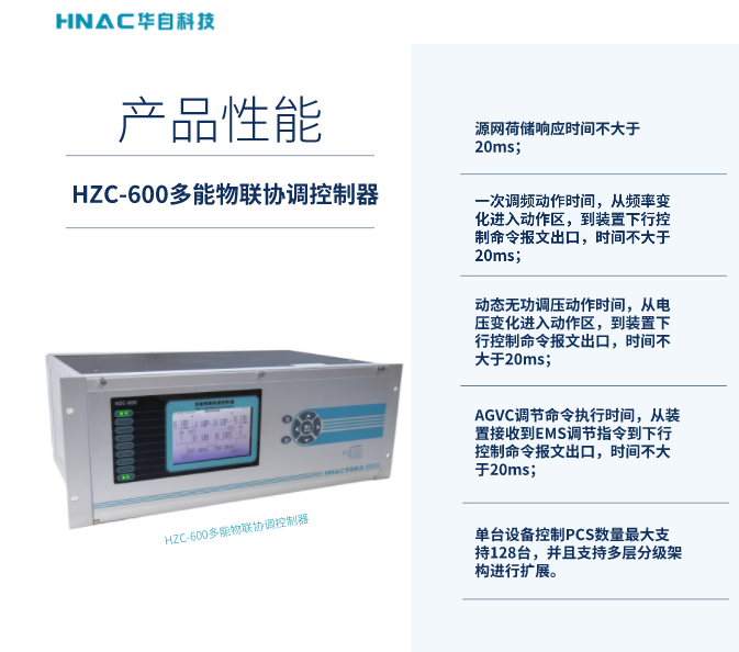 华自科技自主研发的HZC-600多能物联协调控制器(MEIC Coodination Control System)成功应用于国内最大社会资本投资的单体电网侧储能示范电站——湖南城步儒林100MW/200MWh储能电站。实现了对全站多达80套PCS的统一协调控制。该项产品的应用在行业内起到一定的示范作用,并整体提升了储能电站对新型电力系统安全稳定运行的支撑能力。