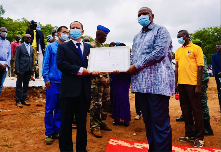 中非共和国总统查克维拉出席华自国际公司承建的博阿利2水电站竣工仪式,并为华自项目经理颁发中非共和国“骑士勋章”。