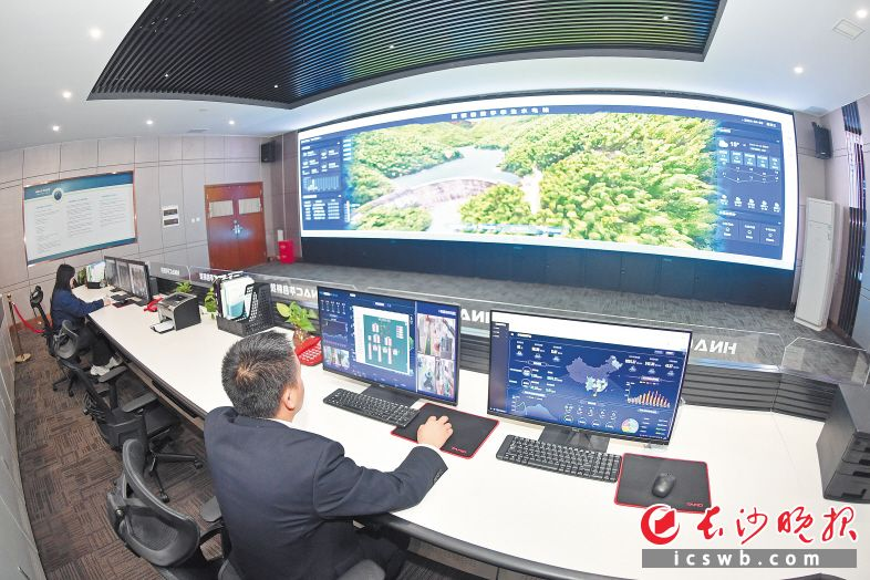 华自科技工作人员正通过三维可视化技术监视水电站运行情况。长沙晚报全媒体记者 王志伟 摄
