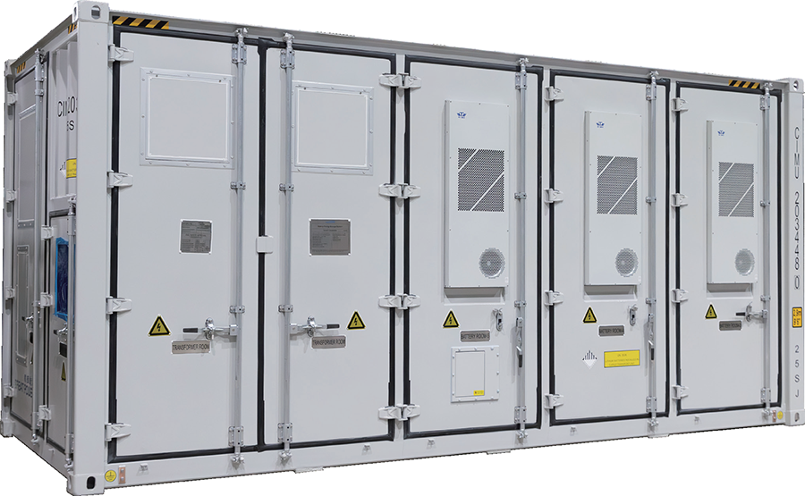 产品型号 HZ-CES-500kW/1000kWh,是一款标准 20尺集装箱储能系统,冷却方式为风冷。内部分为电池室和电气舱,电池舱内主要设备为电池模组、高压盒、直流汇流柜、空调、配电柜等,电气舱则包含 PCS、变压器、EMS通讯柜、消防系统等等。模组设计成 1P16S,采用主流品牌的 280Ah磷酸铁锂电芯。其中电芯为 280Ah电芯,PCS采用 HZ-PCS低压户内式储能变流器,PACK采用湘华储能品牌。